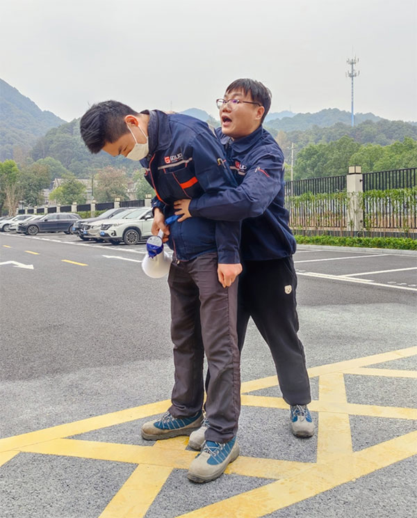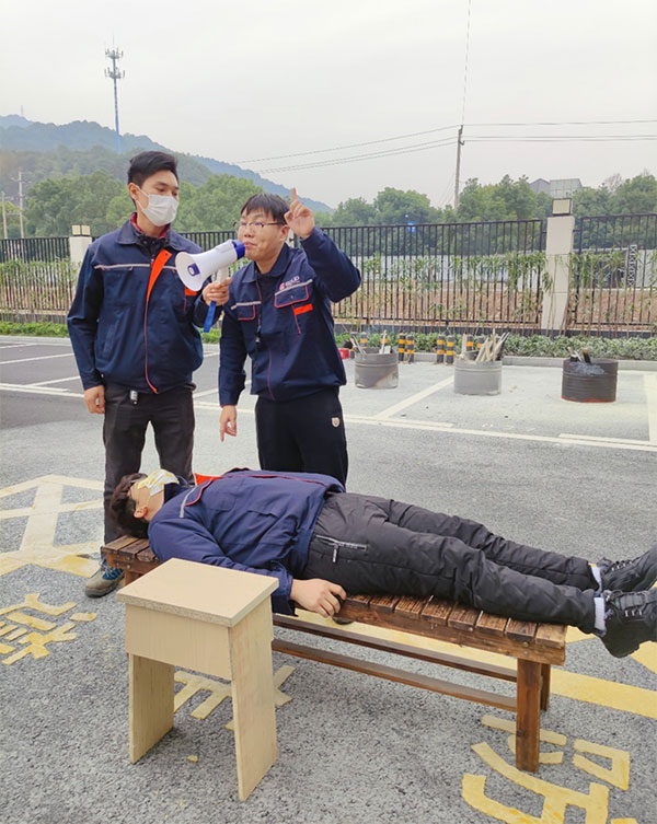 滅火器使用完畢后,安全員組織現(xiàn)場教學(xué)海姆立克急救法和胸外按壓、人工呼吸急救法。通過現(xiàn)場指導(dǎo)、錯(cuò)誤示范、正確示范等多種方式相結(jié)合的手法,使抽象的平安演練變成具體的實(shí)戰(zhàn)演習(xí),大大增強(qiáng)了全體員工的平安意識和自護(hù)自救技能。