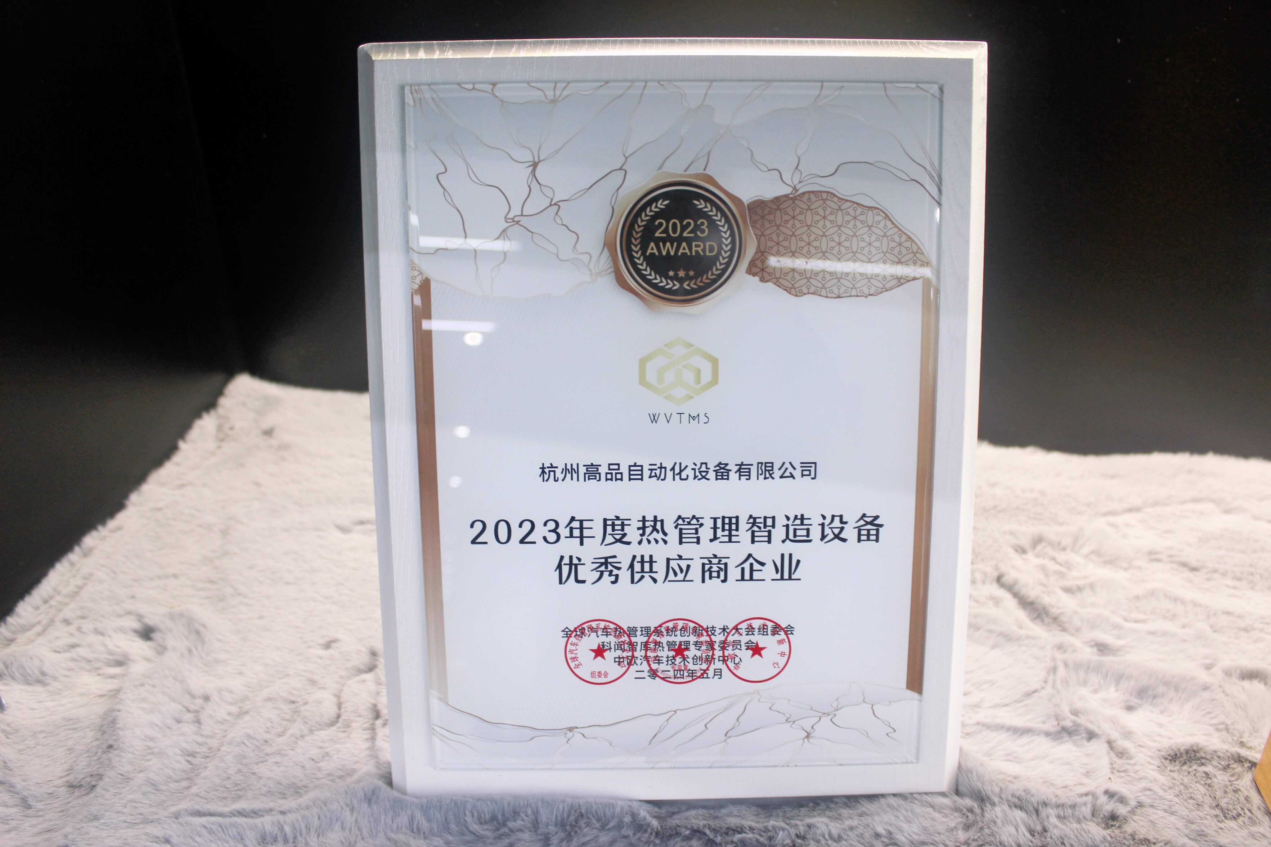 在本次大會上,杭州高品自動化設(shè)備有限公司憑借其卓越的技術(shù)和產(chǎn)品,榮獲了2023年度熱管理智造設(shè)備優(yōu)秀供應(yīng)商企業(yè)的殊榮。這一獎項(xiàng)不僅是對公司過去一年辛勤努力的肯定,更是對其在熱管理設(shè)備領(lǐng)域創(chuàng)新能力的高度認(rèn)可。