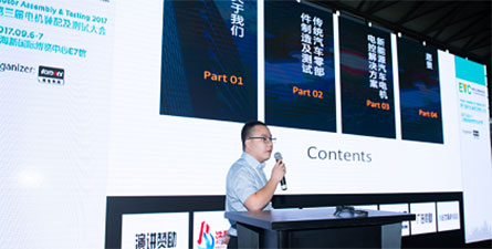 資深主任工程師嚴(yán)其斌代表高品發(fā)表“從傳統(tǒng)汽車零部件到新能源汽車電機(jī)電控——智能裝配和測試技術(shù)分享”的主題演講。